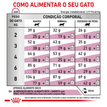 A Ração Royal Canin Veterinary Diet Renal Special para gatos adultos é um alimento coadjuvante especialmente formulado para fornecer suporte nutricional em casos de doença renal crônica. Através de uma formulação cuidadosa, este alimento ajuda a manter a função renal dos gatos que sofrem de condições renais, como insuficiência crônica ou aguda. Sua composição inclui EPA e DHA, um complexo de antioxidantes e um teor reduzido de fósforo, elementos essenciais para apoiar a saúde renal. Além disso, esta ração possui um perfil aromático diferenciado, ideal para estimular o apetite dos gatos, especialmente daqueles que podem apresentar inapetência devido à doença.