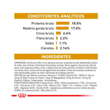 A Ração Royal Canin Urinary S/O para Cães Adultos é especialmente desenvolvida para cães que sofrem de problemas urinários, oferecendo uma dieta completa e balanceada. Com fórmula avançada, essa ração apoia o sistema urinário e também atua diretamente na prevenção e dissolução de cálculos urinários de estruvita e na gestão de urólitos recorrentes, incluindo cálculos de oxalato de cálcio. Essa ração é uma solução coadjuvante para quem busca um manejo nutricional eficaz e seguro para a saúde urinária do seu pet.