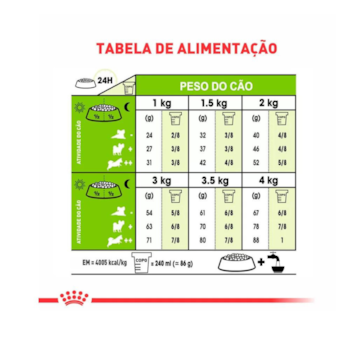 Alimento completo para cães - Especial para cães maturos de raças muito pequenas (até 4kg) - Mais de 8 anos. O teor nutricional desta fórmula ajuda a manter a vitalidade em cães de raça muito pequena que apresentem os primeiros sinais de envelhecimento. Contém um complexo exclusivo de antioxidantes. Os Cães de raça muito pequena têm maior propensão à obstipação. A ingestão equilibrada de fibras (incluindo Psyllium) ajuda a facilitar o trânsito intestinal e contribui para uma boa qualidade das fezes graças à elevada digestibilidade das proteínas L.I.P. Ajuda a suportar um sistema urinário saudável em cães de raças muito pequenas. Este pequeno croquete foi desenvolvido para estar perfeitamente adaptado à mandíbulaminiatura de cães com menos de 4 kg. A sua fórmula exclusiva também ajuda a estimular o apetite caprichoso de cães de raça muito pequena.