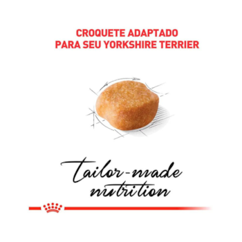 Alimento completo seco para cães adultos e maduros da raça Yorkshire Terrier – A partir de 10 meses de idade. Esta exclusiva fórmula contribui para a manutenção da saúde da longa pelagem do Yorkshire. Enriquecido com um conteúdo adaptado de ácidos graxos Ômega 3 (EPA & DHA), ácidos graxos Ômega 6, óleo de borragem e biotina. Esta fórmula satisfaz os apetites mais delicados graças a uma combinação única de aromas. Uma seleção de nutrientes contribui com a manutenção da saúde em cães maduros. Auxilia a reduzir a formação de tártaro graças a agentes quelantes de cálcio. A coloração dos croquetes pode variar devido aos ingredientes naturais.