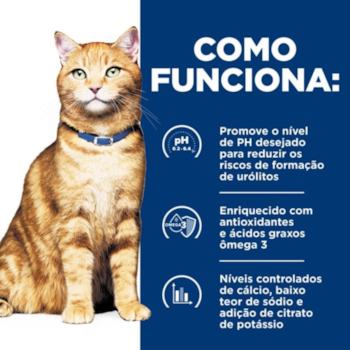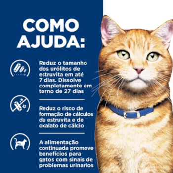 Alimento coadjuvante úmido para gatos adultos a partir de 1 ano, especificamente formulado para suporte nutricional nos quadros de ocorrência e recorrência de urólitos de estruvita (auxílio à dissolução) e oxalato de cálcio, e manejo dietético da cistite idiopática felina (CIF) e inflamação das vias urinárias inferiores dos felinos (DITUIF).