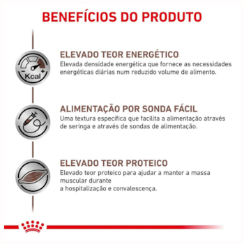 A textura cuidadosamente desenvolvida da Royal Canin Recovery permite que seja administrada com facilidade via sondas ou seringas, ideal para cães que, por motivos de saúde, apresentam dificuldades em se alimentar de forma natural. Essa característica possibilita que o alimento chegue ao organismo do pet com o mínimo de esforço, assegurando que ele receba o suporte nutricional necessário mesmo quando a alimentação convencional não é viável. Essa praticidade na administração é um diferencial que facilita o trabalho dos cuidadores e profissionais de saúde animal.