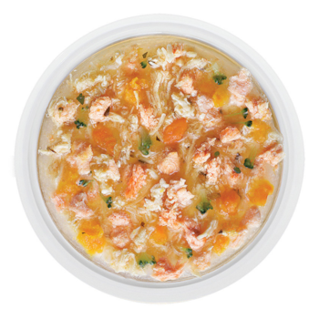 Carne de Frango, Carne de Salmão, Abóbora, Brócolis Desidratado, Cloreto de Sódio (Sal Comum), Água, Goma Xantana.