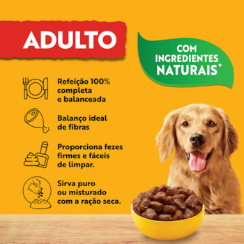 Seus pedacinhos suculentos, proporcionará ao seu cãozinho uma deliciosa experiência. A textura macia da Ração Úmida Sache Pedigree é ideal para cães de todas as idades e raças. É uma maneira prática e fácil de alimentar o seu cão, além de auxiliar na hidratação.