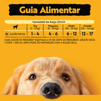 Seu cão é parte da família e merece o melhor e pensando nisso, o Sachê Pedigree é a maneira perfeita de demonstrar o seu amor por ele todos os dias, oferecendo-lhe uma refeição completa, saborosa e nutritiva. A Pedigree se preocupa com a saúde e bem-estar dos pets, por isso não utilizam conservantes, sabores e aromas artificias, apenas ingredientes de qualidade e enriquecida com vitaminas e minerais, a Ração Úmida Sachê Pedigree garante a nutrição que o seu amigo peludo precisa para se manter saudável e feliz.