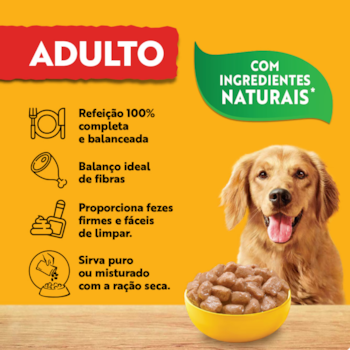 Seus pedacinhos suculentos, proporcionará ao seu cãozinho uma deliciosa experiência. A textura macia da Ração Úmida Sache Pedigree é ideal para cães de todas as idades e raças. É uma maneira prática e fácil de alimentar o seu cão, além de auxiliar na hidratação.