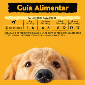 Seu cão é parte da família e merece o melhor e pensando nisso, o Sachê Pedigree é a maneira perfeita de demonstrar o seu amor por ele todos os dias, oferecendo-lhe uma refeição completa, saborosa e nutritiva. A Pedigree se preocupa com a saúde e bem-estar dos pets, por isso não utilizam conservantes, sabores e aromas artificias, apenas ingredientes de qualidade e enriquecida com vitaminas e minerais, a Ração Úmida Sachê Pedigree garante a nutrição que o seu amigo peludo precisa para se manter saudável e feliz.