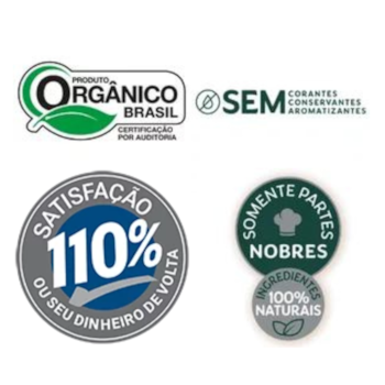 Água, carne de aves orgânica (frango – 37%), sementes de chia orgânicas, grãos de quinoa orgânicos, goma guar, acetato de DL-alfa-tocoferol, acetato de retinol, ácido ascórbico monofosfato, ácido fólico, ácido pantotênico, biotina, bissulfito de menadiona nicotinamida, cianocobalamina, cloreto de colina, colecalciferol, niacina (ácido nicotínico), piridoxina, riboflavina, tiamina, selenometionina hidroxi análoga.