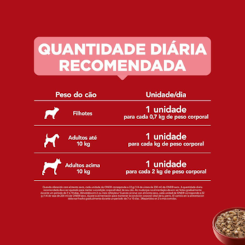 | Pequeno | Filhotes | 1 sachê para cada 0,7 kg |