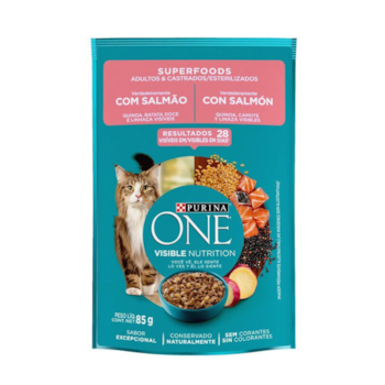 Ração Úmida Sachê Purina One para Gatos Adultos e Filhotes sabor Salmão 85gr