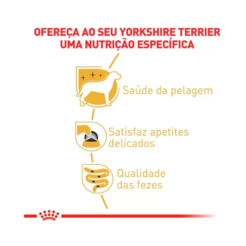 O seu pet sentirá a diferença do Alimento Úmido Royal Canin. Com uma textura macia, benefecia cães adultos, além de um perfil aromático diferenciado, que ajuda a aumentar a palatabilidade. É completo e equilibrado, inclusive pode ser utilizado sozinho para complementar a alimentação do pet. Indicado para cães adultos e maduros da raça yorkshire terrier, a partir de 10 meses. Mantém os pelos saudáveis e brilhantes, Alta palatabilidade e níveis baixos de calorias. Com ingredientes selecionados auxilia nos processos digestivos, no aumento das defesas do sistema imunológico e equilíbrio da flora intestinal.