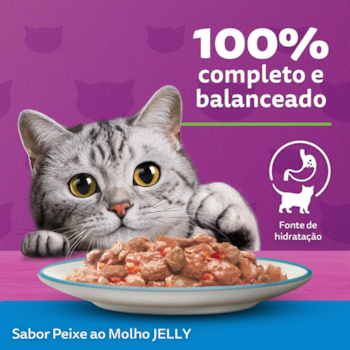Textura em jelly (textura gelatinosa) que agrada o paladar do gato e facilita o consumo.