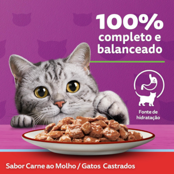 Kit Sachês Whiskas para Gatos Adultos Castrados 85g Carne ao Molho