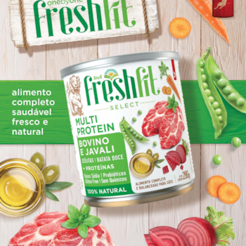 A Ração Úmida Spin Pet Freshfit Multi Protein Bovino e Javali é uma opção de alimento fresco, saudável e 100% natural para o seu cão. Ela contém uma mistura de fibras solúveis e insolúveis, chamada freshfit™ select, que auxilia no trato gastrointestinal do animal, aumentando a umidade do prato e prevenindo problemas renais e intestinais.