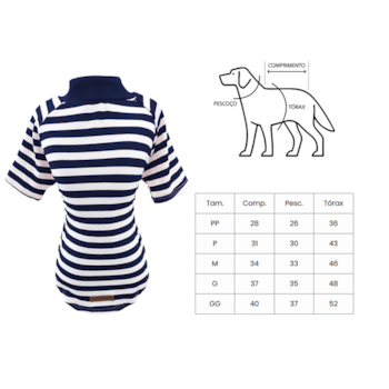 Roupinha Blusa Listra com Mangas Marinho Fábrica Pet M para Cães