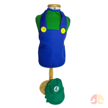 Para completar o look, a roupinha acompanha um boné verde com a icônica letra "L" estampada na frente. Esse acessório faz toda a diferença, criando uma fantasia completa que garante que seu pet seja o centro das atenções onde quer que vá.
