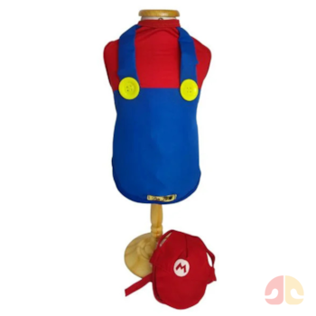 A Roupinha Super Mario foi desenvolvida para trazer o máximo de autenticidade ao visual do seu pet. Seu design conta com as cores marcantes do famoso encanador: azul e vermelho, além de um charmoso botão amarelo em cerâmica plástica, tornando a peça ainda mais fiel ao personagem. O conjunto acompanha um boné vermelho com a icônica letra "M" estampada na frente, garantindo um toque extra de originalidade.