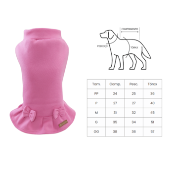 Com um design encantador e feminino, esse vestido se destaca pelo caimento delicado e acabamento refinado. A cor pink, vibrante e estilosa, valoriza a personalidade da pet, tornando cada passeio ainda mais especial. Além disso, sua modelagem anatômica, aliada às costuras reforçadas, assegura um ajuste confortável e duradouro, facilitando o uso no dia a dia.