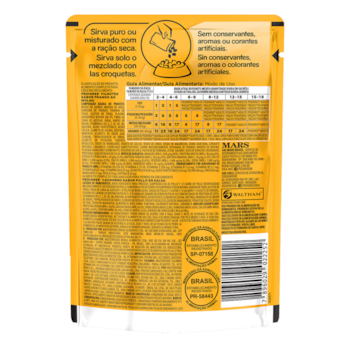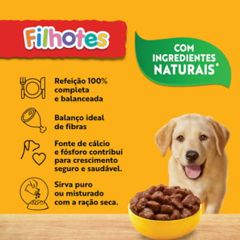 Seus pedacinhos suculentos, proporcionará ao seu cãozinho uma deliciosa experiência. A textura macia da Ração Úmida Sache Pedigree é ideal para cães de todas as idades e raças. É uma maneira prática e fácil de alimentar o seu cão, além de auxiliar na hidratação.