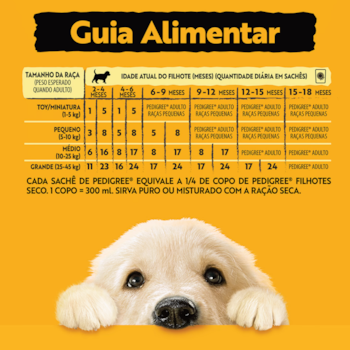 Seu cão é parte da família e merece o melhor e pensando nisso, o Sachê Pedigree é a maneira perfeita de demonstrar o seu amor por ele todos os dias, oferecendo-lhe uma refeição completa, saborosa e nutritiva. A Pedigree se preocupa com a saúde e bem-estar dos pets, por isso não utilizam conservantes e aromas artificias, apenas ingredientes de qualidade e enriquecida com vitaminas e minerais, a Ração Úmida Sachê Pedigree garante a nutrição que o seu filhote precisa para um crescimento saudável e feliz.