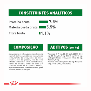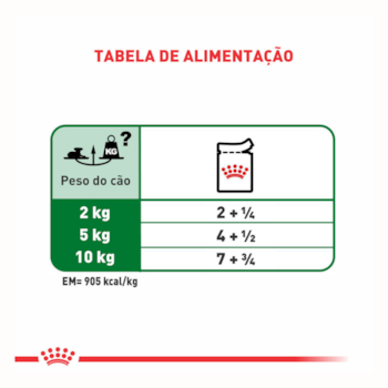 Alimento completo úmido para cães adultos de porte pequeno (peso até 10 kg) – De 10 meses a 12 anos de idade. A Ração Royal Canin Sachê Size Health Nutrition Wet para Cães Adultos Raças Pequenas foi desenvolvida especialmente para proporcionar os principais nutrientes ao seu amiguinho. Elaborada com antioxidantes e vitamina E, facilitam os processos digestivos, elevando as defesas do sistema imunológico, além de proporcionar o equilíbrio da flora intestinal.