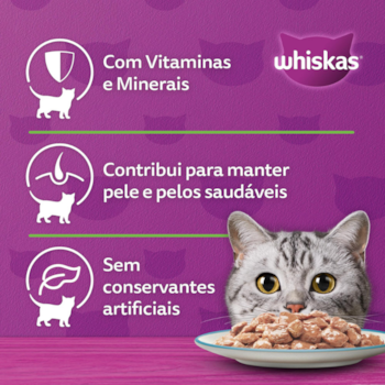 O Sachê Whiskas® em sua fórmula contem nutrientes balanceados ricos em cálcio para fortalecer ossos e dentes.