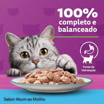 - Alta palatabilidade: carne ao molho com textura macia que estimula o apetite de gatos mais exigentes.