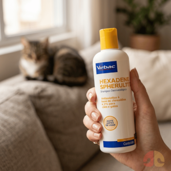 Para potencializar os cuidados dermatológicos, é interessante associar o uso com produtos dermatológicos para cães e gatos, criando uma rotina mais completa.