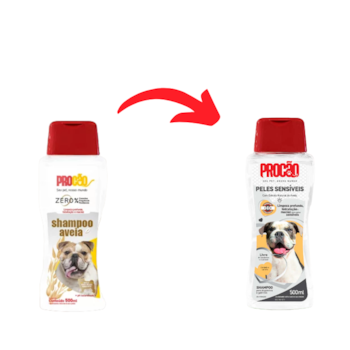 - Molhe completamente a pelagem do animal, protegendo os olhos, nariz e ouvidos. Aplique o Shampoo Peles Sensíveis Procão na quantidade suficiente para fazer espuma e espalhe por todo o corpo. Massageie durante alguns minutos e enxágue.