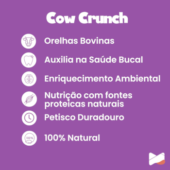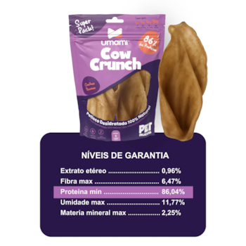 Snack Orelha Bovina Desidratada Cow Crunch Umami para Cães