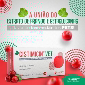 Cistimicin Vet é um suplemento alimentar formulado com extrato de arando (cranberry) e aditivo prebiótico (betaglucanas). Indicado para cães e gatos de todas as idades, o suplemento fornece um aporte nutricional desses nutrientes essenciais, promovendo a saúde e o bem-estar dos animais.