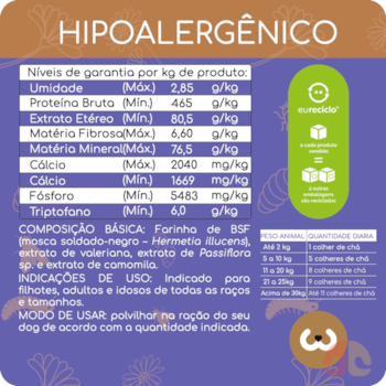 A fórmula leve, nutritiva e funcional ajuda a fortalecer o sistema imunológico, favorece a saúde muscular graças ao perfil proteico da BSF e oferece um baixo teor de gordura. Em outras palavras, o topper não é apenas calmante: ele também é saudável, equilibrado e capaz de complementar a ração de maneira genuína, proporcionando melhor disposição física sem estimular excessos de energia.