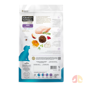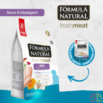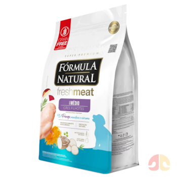 Desenvolvida por médicos veterinários, a linha Fórmula Natural Fresh Meat utiliza os conceitos mais avançados da nutrição de cães e gatos. Naturalmente saborosa e nutritiva, possui como grande diferencial a utilização de carne fresca e fontes especiais de carboidratos, fibras, vitaminas e minerais, como as frutas e vegetais. É uma linha completa que oferece versões com cuidados específicos para diferentes necessidades e estágios de vida. Fórmula Natural Fresh Meat Cães Filhotes Médio oferece todos os cuidados para um ótimo desenvolvimento dos cães filhotes de porte médio, do desmame até 12 meses de idade.