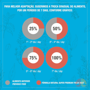 - Toda mudança na alimentação de seu pet deve ser feita de forma gradual durante um período de 7 dias.