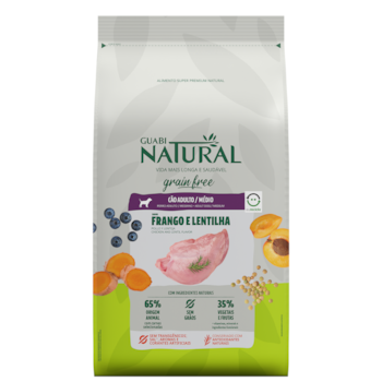 Ração Guabi Natural Grain Free Cães Adultos Porte Médio 12 kg Sabor Frango e Lentilha
