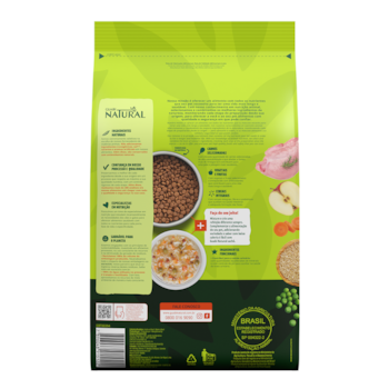 Ingredientes Naturais: Sem transgênicos ou corantes artificiais, a ração é feita com ingredientes naturais de alta qualidade, como frango e arroz integral.