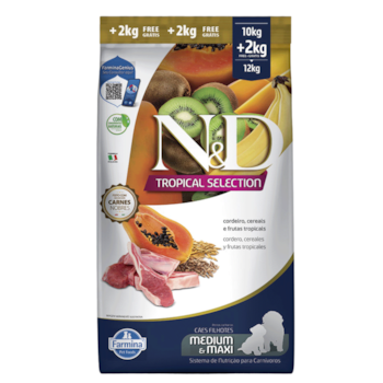 Ração N&D Tropical Selection Cães Filhotes 10kg + 2kg Grátis Porte Médio e Grande Sabor Cordeiro, Cereais e Frutas Tropicais