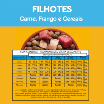 - Tamanho de grão: Específico para filhotes de raças grandes e médias