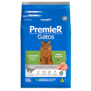 Ração PremieR Ambientes Internos gatos castrados acima de 12 anos frango 500gr