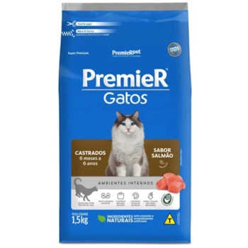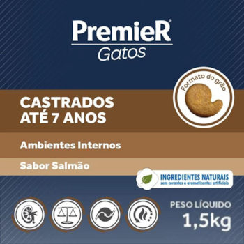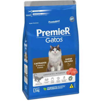 Ração PremieR Ambientes Internos gatos castrados até 6 anos salmão 1,5kg