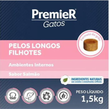 Ração PremieR Ambientes Internos Gatos Filhotes De Pelo Longo Salmão 1,5kg
