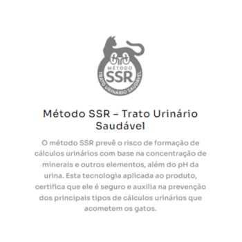 - Utiliza a tecnologia SSR para prevenir a formação de cálculos urinários, garantindo um trato urinário saudável;