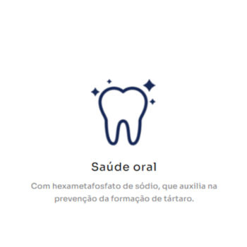 - Inclui hexametafosfato de sódio, que auxilia na prevenção da formação de tártaro e na manutenção da saúde oral;