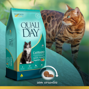 Gatos castrados têm uma tendência maior à obesidade, e a Ração Qualiday Cat reconhece essa preocupação. A Qualiday Cat é um alimento completo, é formulado para auxiliar na prevenção da obesidade, fornecendo a quantidade de calorias ideal para gatos castrados, para manterem um peso saudável.