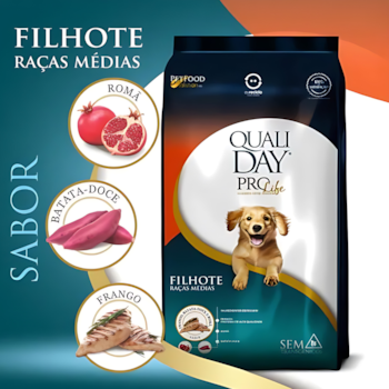 Ração Qualiday ProLife Sabor Frango, Batata-Doce e Romã 10kg Para Cães Filhotes de Raças Médias