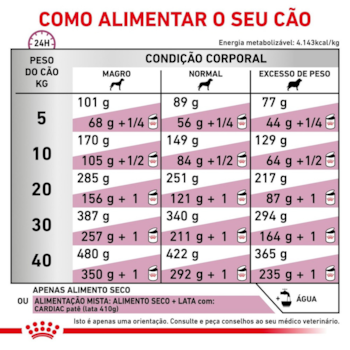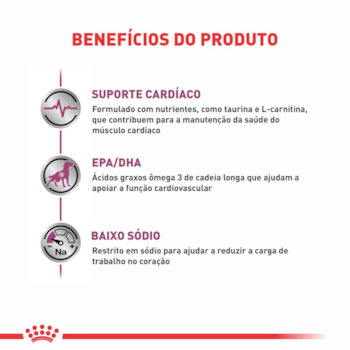 CARDIAC CANINE é um alimento coadjuvante indicado para cães, destinado a ajudar em sua função cardíaca em caso de insuficiência cardíaca e hipertensão. Conteúdo de nutrientes e minerais adaptados para o suporte nutricional de cães com distúrbios cardíacos. Teor moderado de fósforo para auxiliar na manutenção da função renal. A Ração Royal Canin Canine Veterinary Diet Cardiac para Cães Adultos com Problemas Cardiacos, possui um nível moderado de fósforo para preservação da função renal. Níveis de potássio, magnésio e sódio adaptado para insuficiência cardíaca crônica.