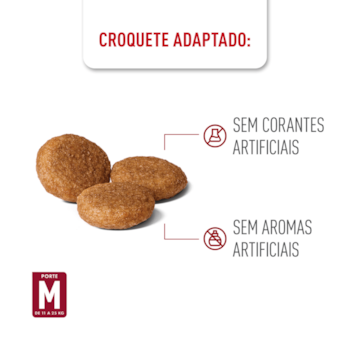 Indicação precisa: desenvolvida para cães adultos de porte médio, entre 11 e 25 kg, com idade entre 12 meses e 7 anos