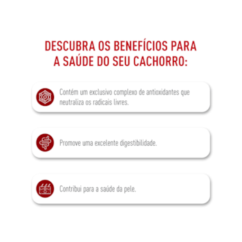 A saúde do intestino reflete diretamente no comportamento e na aparência do Pet. Quando o sistema digestivo funciona bem, o Pet tem mais disposição, menos desconforto e uma pelagem visivelmente mais bonita. Essa ração conta com polpa de beterraba e levedura de cerveja, ingredientes conhecidos por promoverem o equilíbrio da microbiota intestinal.
