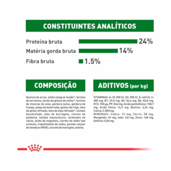 Os alimentos Super Premium apresentam um nível nutricional mais elevado, e atendem os requisitos mínimos estabelecidos pelo Conselho de Nutrição Animal, os níveis nutricionais devem estar em equilíbrio entre os níveis mínimos e máximos apresentados pela AAFCO (Association of American Feed Control Officials). A Ração Royal Canin Mini Indoor Sênior para Cachorros Idosos Mini de Ambientes Internos foi produzida atendendo todos os requisitos. Esses níveis são determinados pelas pesquisas, que buscam ótimas condições de pelagem, desenvolvimento de musculatura e, principalmente, otimização de performance na reprodução e no sistema imunológico.