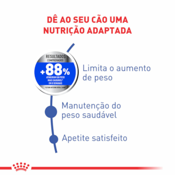 Alimento completo seco para cães adultos e maduros de porte pequeno (peso até 10 kg) com tendência à obesidade – A partir de 10 meses de idade. A Ração Royal Canin Mini Light para Cães Adultos de Raças Pequenas com Tendência a Obesidade, a partir de 10 Meses de Idade é suficientemente ampla para responder perfeitamente às necessidades e estilo de vida de cada um deles. Mini Light supre as necessidades nutricionais dos cães de tamanho pequeno com tendência a obesidade (peso entre 1 e 10kg) a partir dos 10 meses de idade. Uma deliciosa ração com vários benefícios para o seu animal de estimação.